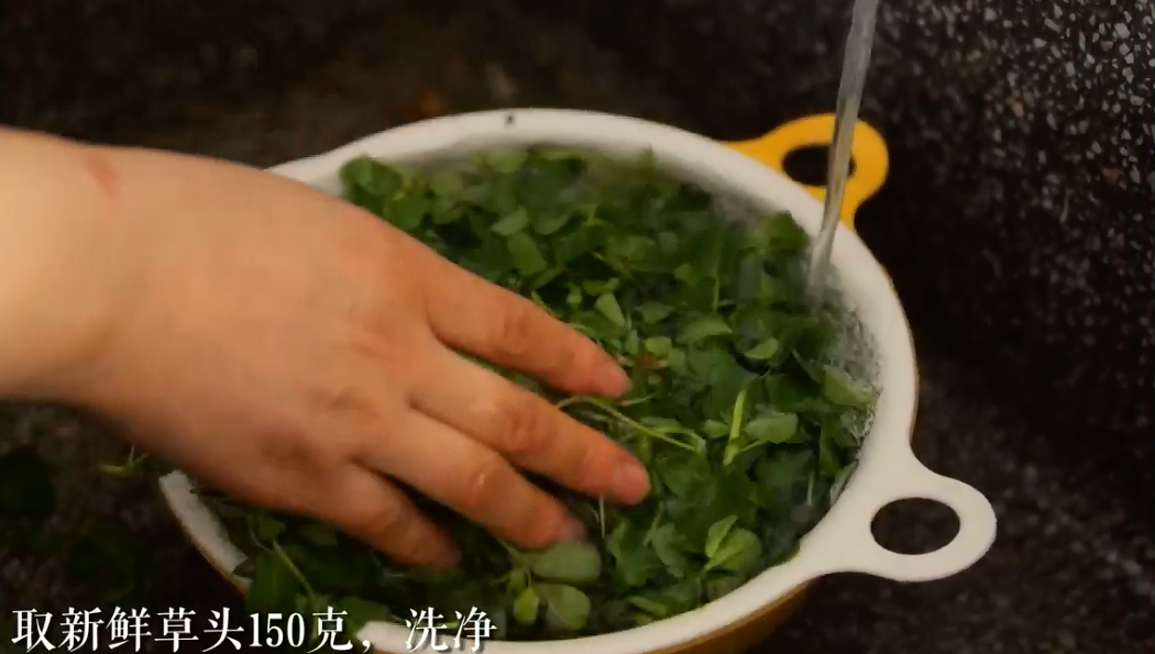 1.取新鲜草头150克,洗净;热水烫熟后捞出,挤干水分后切碎。