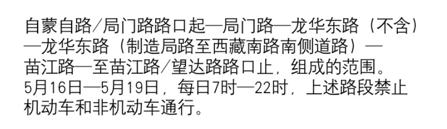 最新通告!5月14日至19日,市中心这些道路将禁止机动车和非机动车通行→