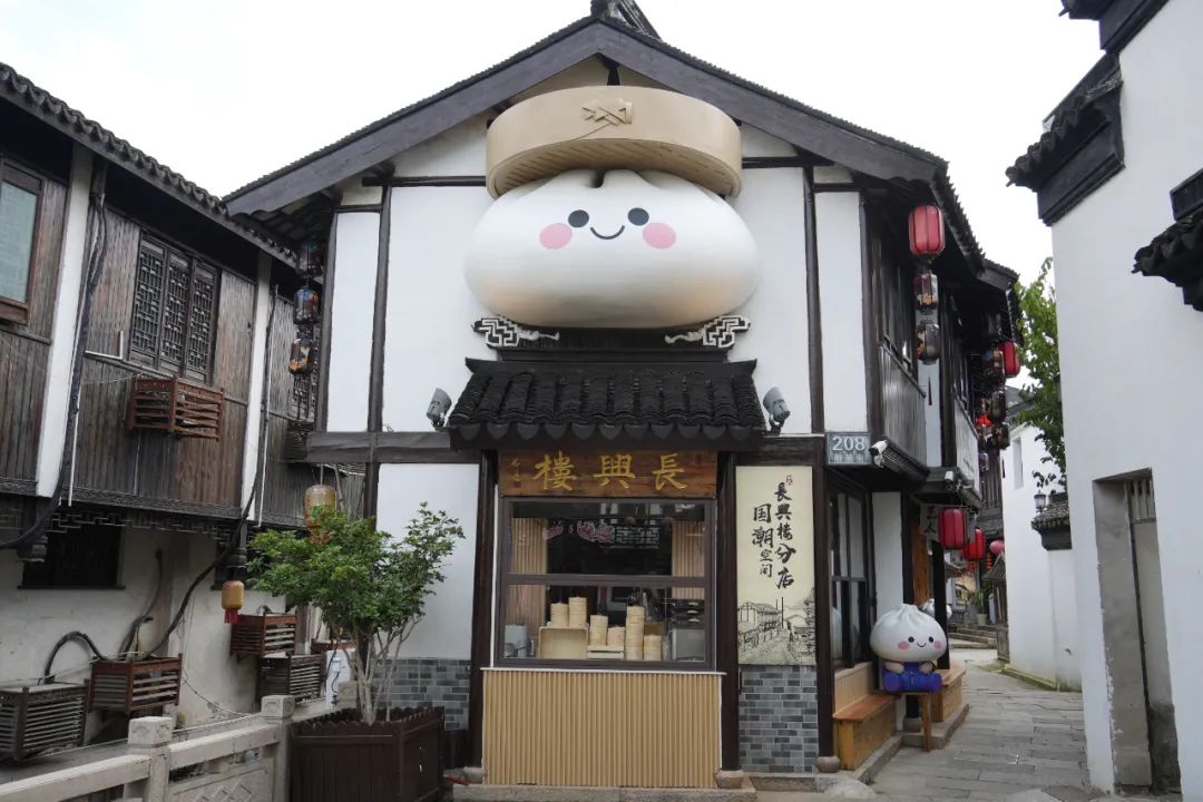 走进长兴楼,传统与时尚的融合令人眼前一亮。一层设置了开放式吧台和文创空间,在保留传统韵味的同时,巧妙融入时尚元素。工作人员介绍,开放式吧台预计于9月份开放,届时游客可以在此一边品尝美酒,一边欣赏古镇风景。正在店内参观的南翔居民李先生告诉记者:“长兴楼是我们从小吃到大的老店,现在有了这个‘国潮空间’,感觉它又焕发出新的活力了,既保留了老味道,又有了新玩法。”