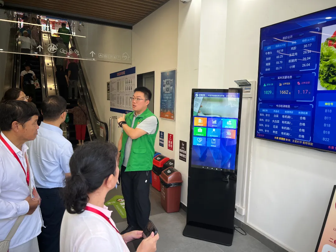 集市全面启用智慧农贸管理系统,每日对农产品进行农残等7大类项目的快速检测,并将检测结果、计量数据及销售动态实时公示于一楼大屏幕,实现信息透明,让居民买得明白、吃得放心。