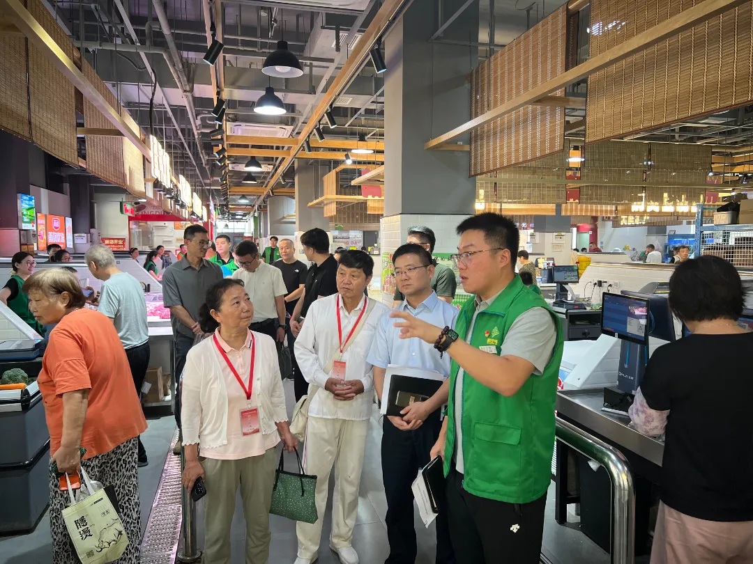 在安亭镇惠嘉源集贸市场,评议小组详细了解菜场升级改造后的成效与日常运营状况。该集市占地近3000平方米,分设于邻里中心一、二层,致力于打造“全时段生活解决方案”。一楼引进了麦当劳、老盛昌等知名餐饮品牌,方便居民日常用餐;二楼则设有智慧菜场和惠民超市,涵盖水产、肉类、蔬果等16大类农副产品,并专门设立平价菜专柜,以实惠价格让利于民。