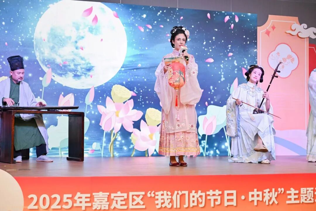 值得一提的是,活动现场还有外籍友人“扎闹猛”。诗乐表演《月满四海 浓情在嘉》中,阿根廷留学生莉娜用流利的中文高歌一曲,诉说中秋情思。“我从小在中国长大,所以现在也在上海大学读书,我非常喜欢中国的文化,我知道中秋有吃月饼、赏月的习俗。”莉娜说道。