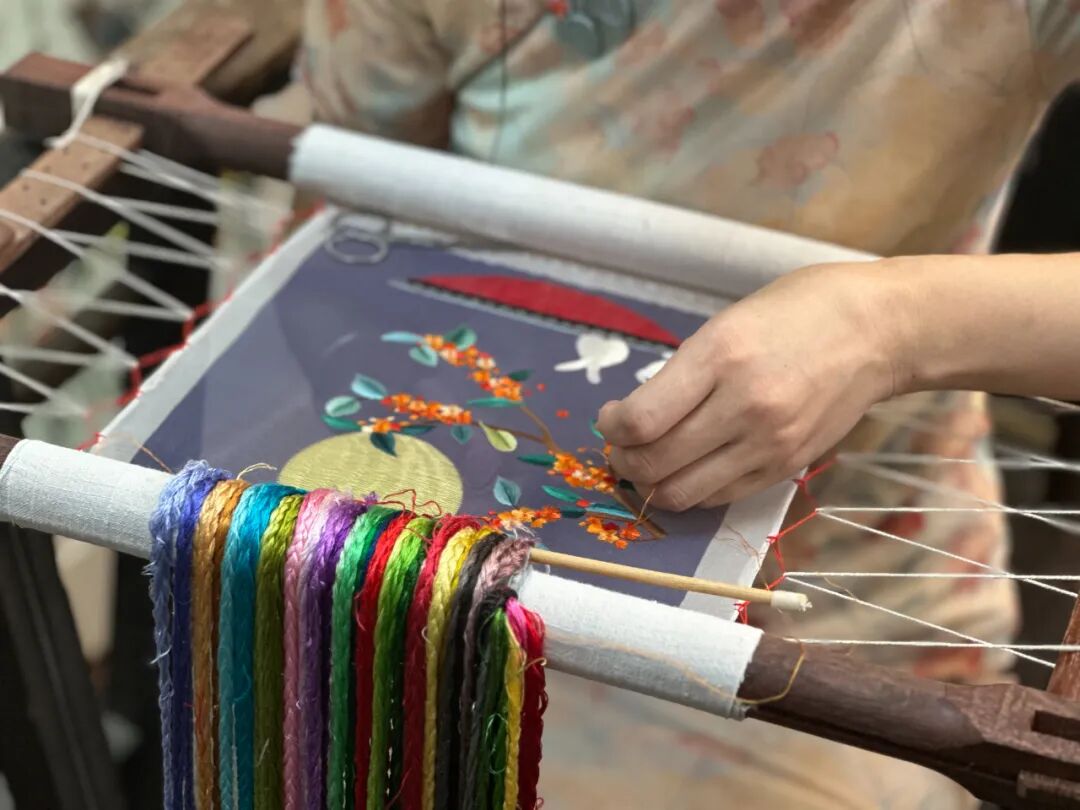 此外,为让闺绣文化更贴近现代日常生活,范冬梅还延伸开发了一系列文创衍生品,涵盖项链、耳环、丝巾、书签等品类,所有产品均巧妙融入中秋元素,既保留了非遗技艺的精髓,又符合当下消费者的审美与使用需求。“非遗传承不能只停留在展示层面,更要走进生活、融入记忆。”范冬梅表示,“我们还计划开设针对青少年的闺绣体验课程,让孩子们通过学习最基础的针法,亲手完成一件与中秋相关的小作品,在动手实践中感受非遗魅力,把传统文化自然而然地融入到节日记忆里。”