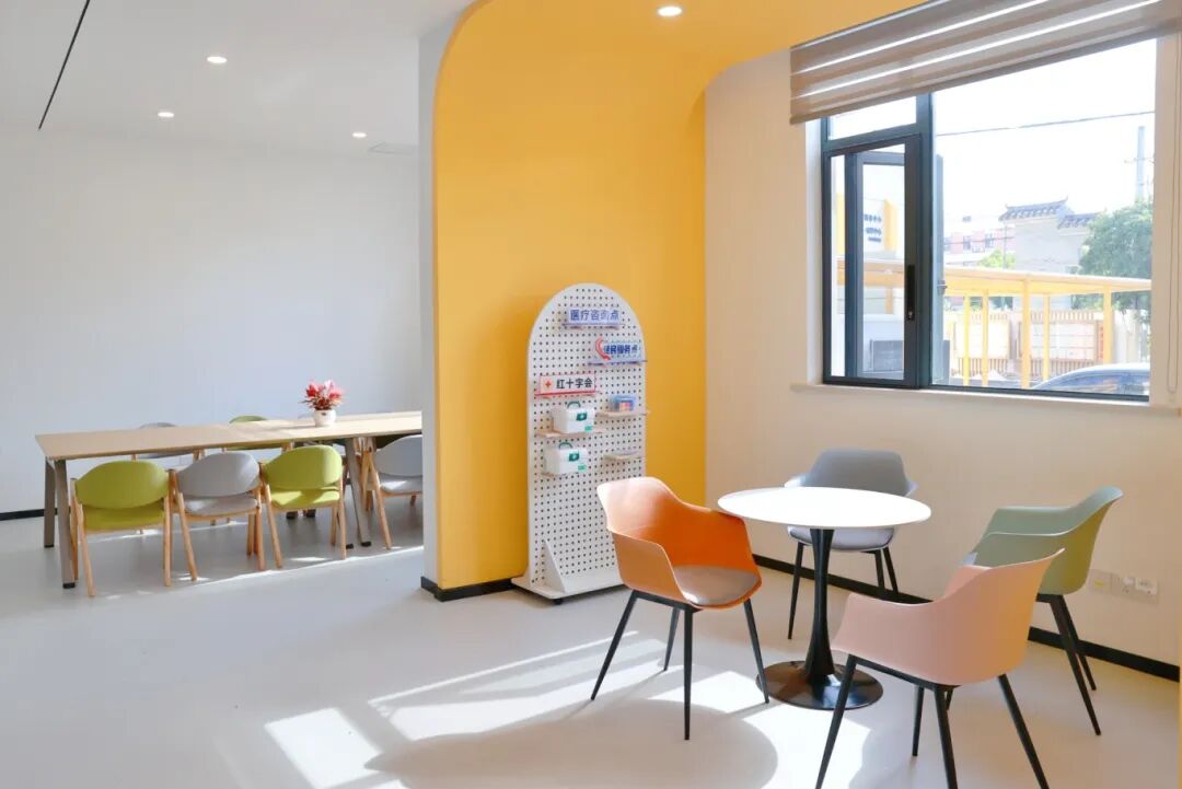 相邻的2号楼,则将服务重点聚焦于“养老服务”。一楼设置了长者运动健康之家、老年人日间照护中心和助餐点,并新增无障碍卫生间。这些设施将全方位满足老年群体在医疗保健、健康养生、饮食起居和社交娱乐等方面的需求。