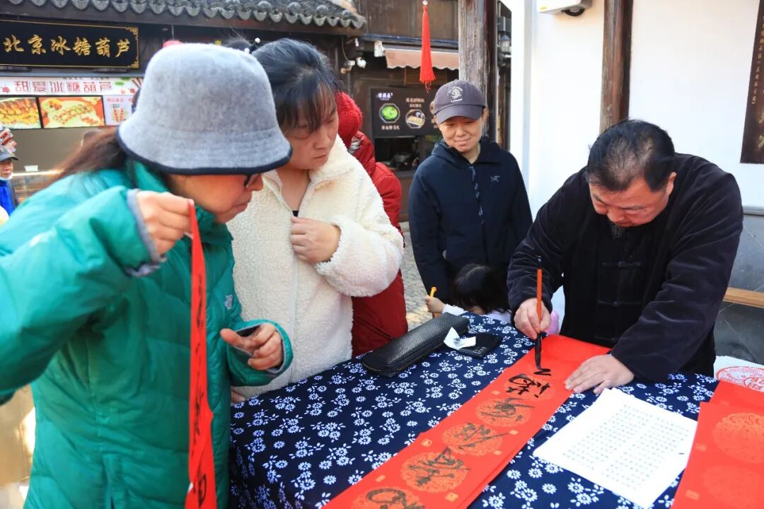 近日,南翔古镇2026新春元宵活动热闹开场。2月4日,作为亮点之一的“墨香迎春”新春送福活动在双塔区域举行,为即将到来的马年春节增添传统韵味。