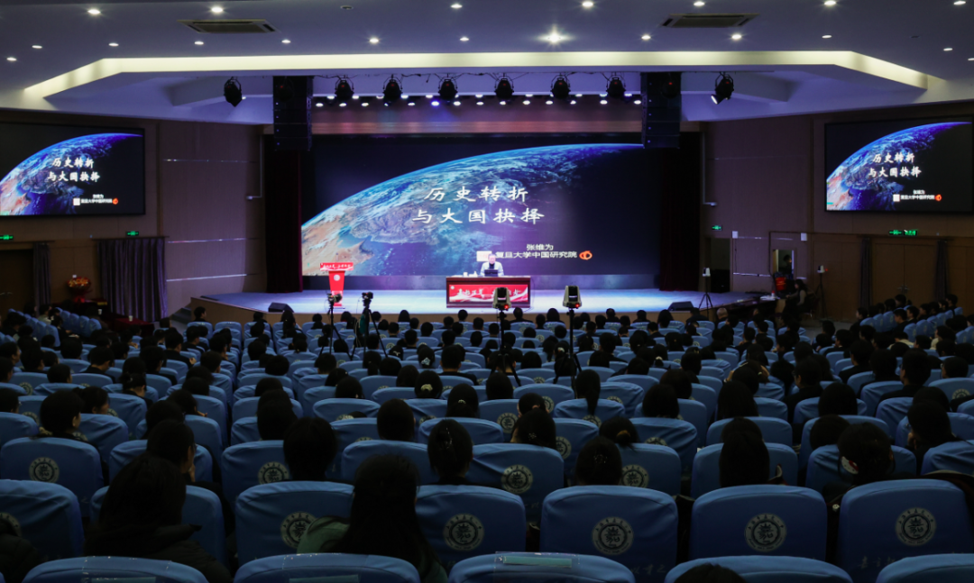 除了年味习俗的延续,满满家国情怀的“大思政课”也是不少学校新学期的打开方式。在嘉定一中,复旦大学特聘教授、复旦大学中国研究院院长张维为惊喜现身,他从自己的研究出发,为现场学生带来了“历史转折和大国抉择”主题讲座。