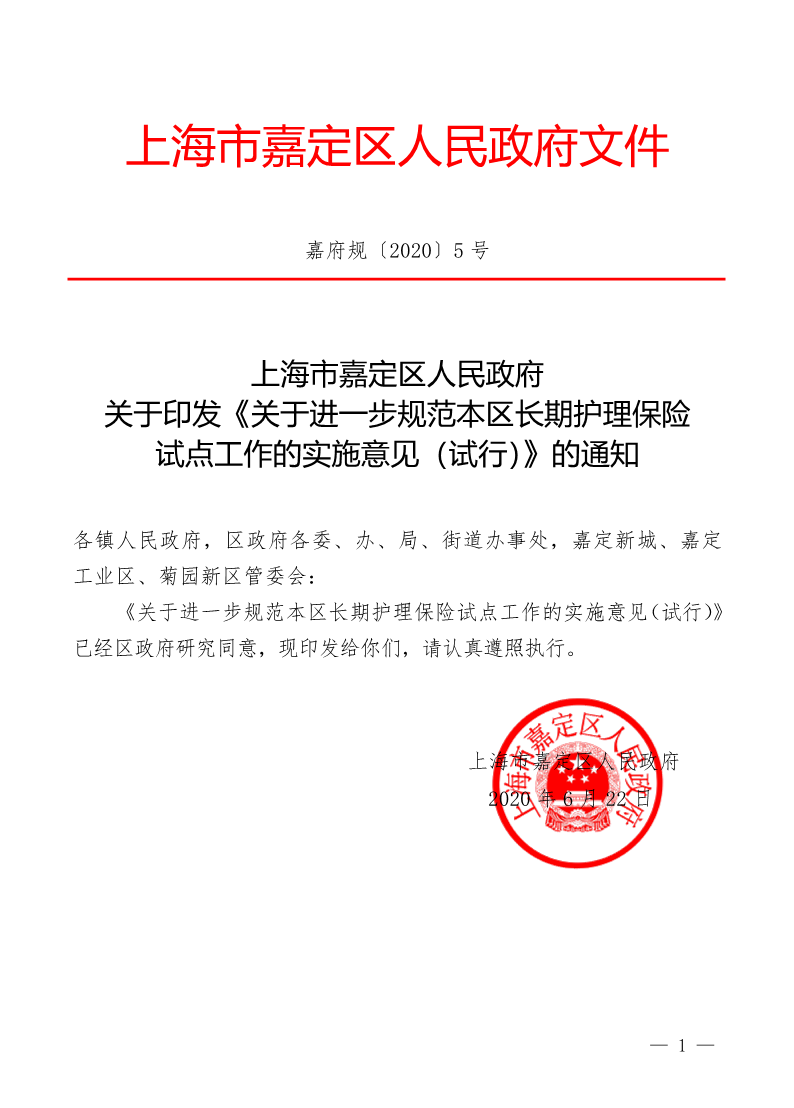 | 名 称: | 上海市嘉定区人民政府关于印发《关于进一步规范本区长期护理保险试点工作的实施意见(试行)》的通知 | ||