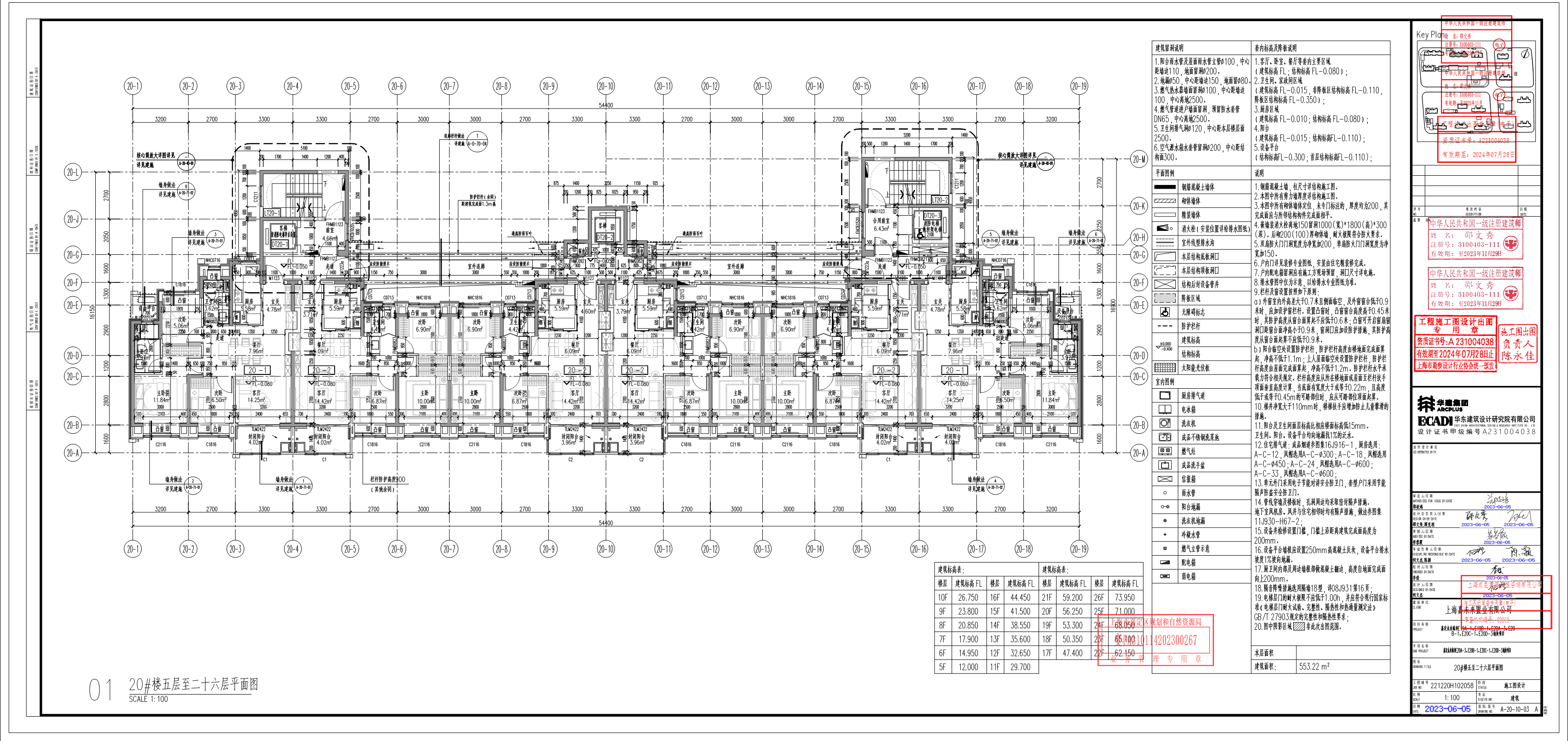 上海嘉未来置业有限公司 嘉定未来城市 20#楼 五~二十六层平面图、立面图、剖面图