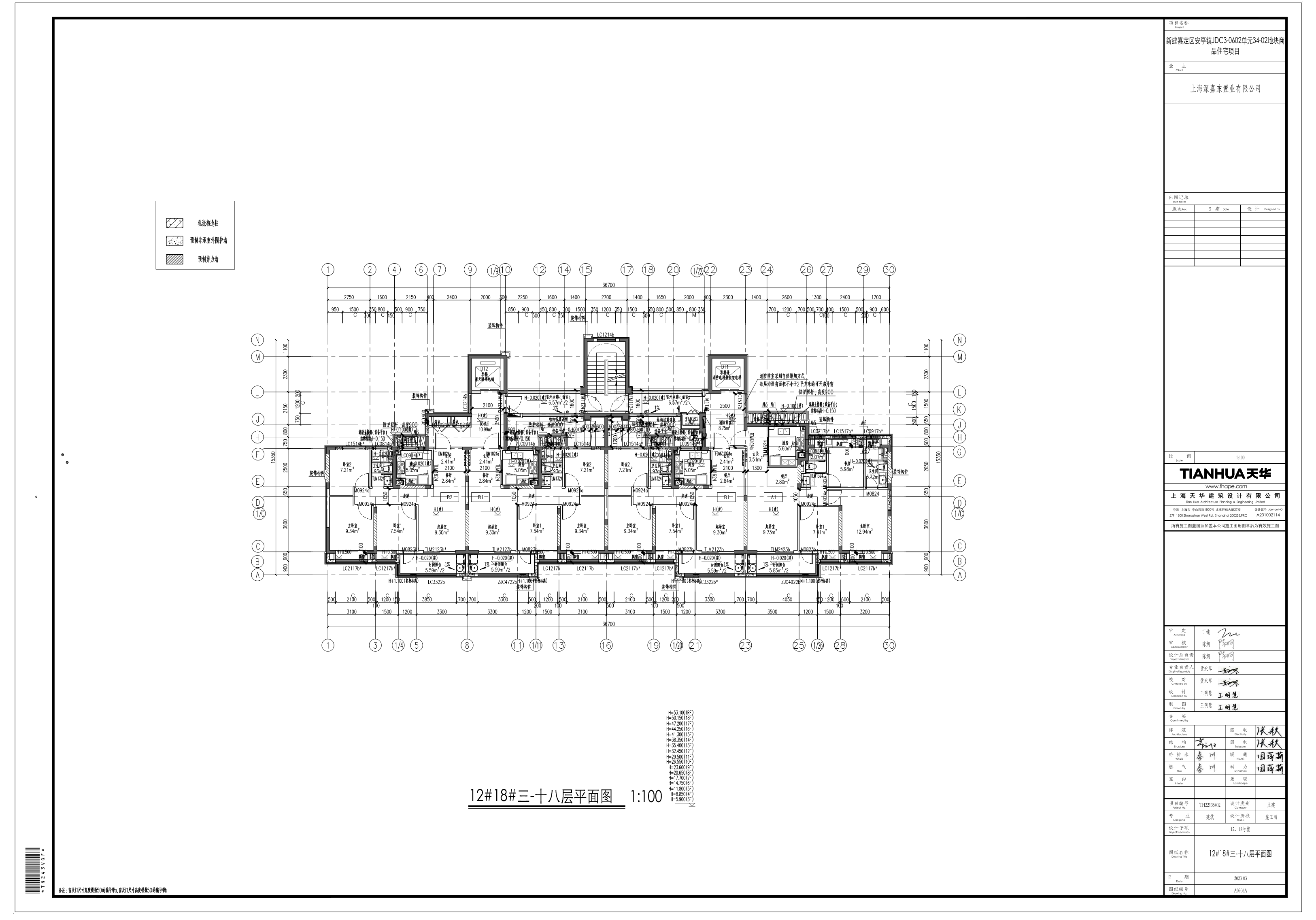 上海深嘉东置业有限公司(安亭新镇JDC3-0602单元34-02地块)12#、18#楼 三~十八层建筑平面图、立面图、剖面图