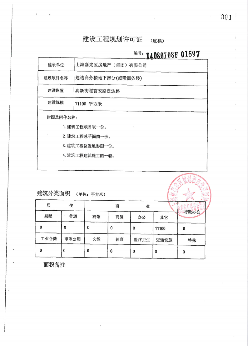 上海嘉定区房地产(集团)有限公司 威隆商务楼 建设工程规划许可证及相关材料