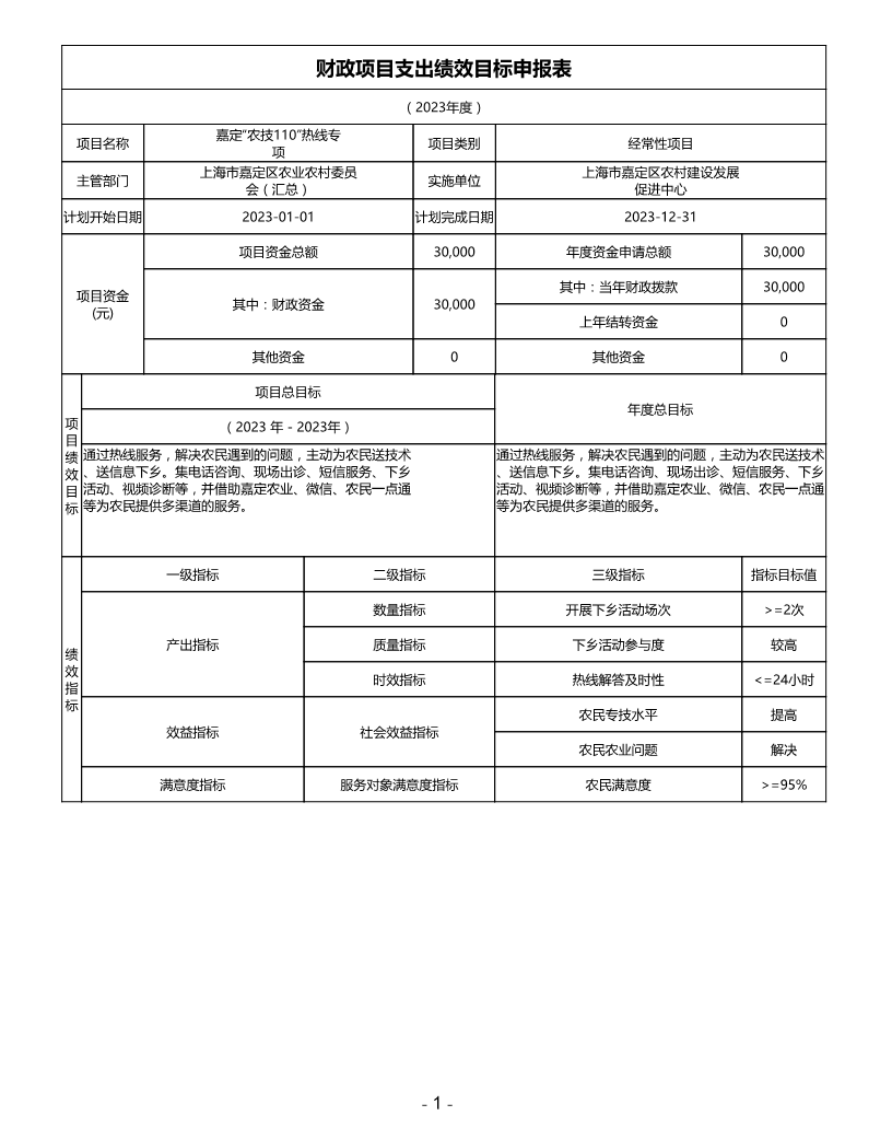上海市嘉定区农村建设发展促进中心2023年度项目绩效目标表