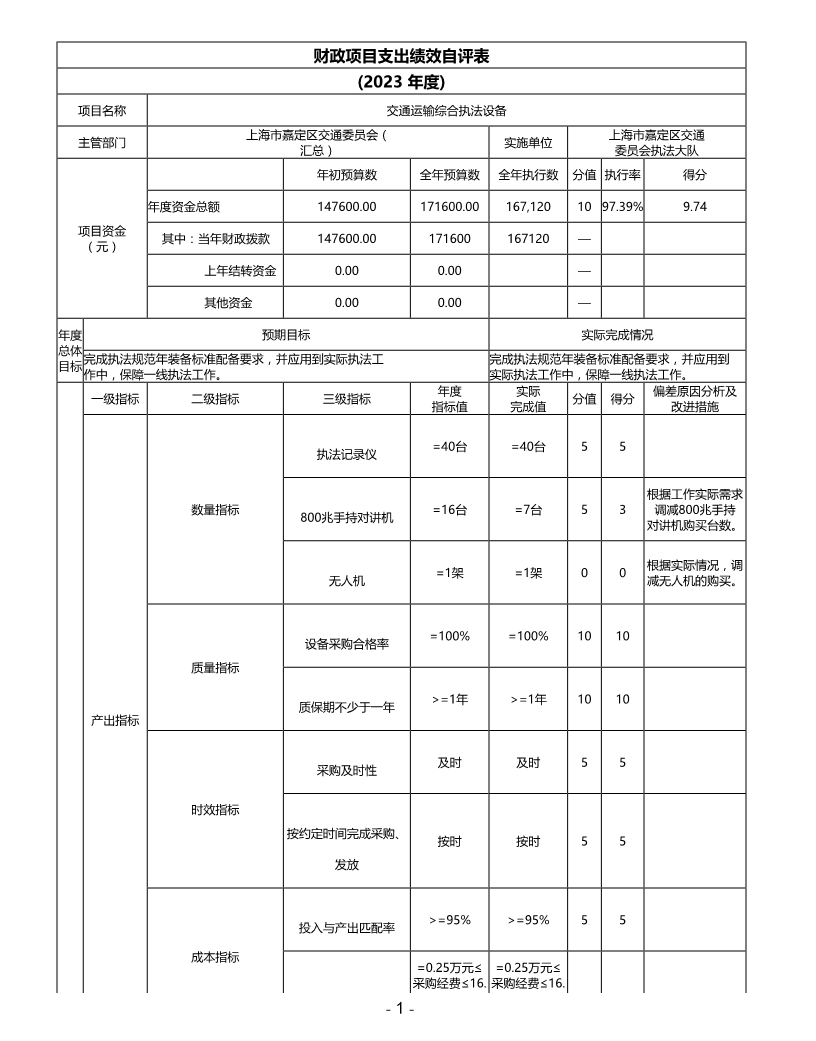 上海市嘉定区交通委员会执法大队2023年度项目绩效自评表