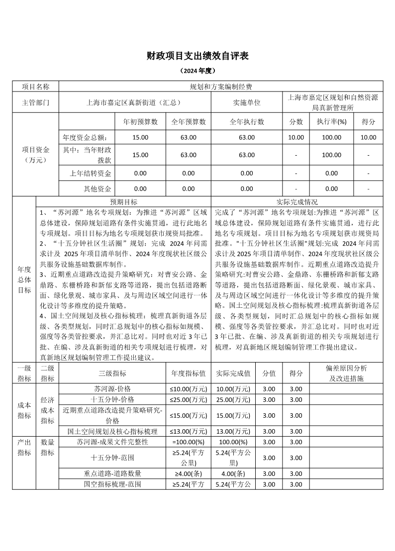 上海市嘉定区规划和自然资源局真新管理所2024年度财政项目绩效自评表