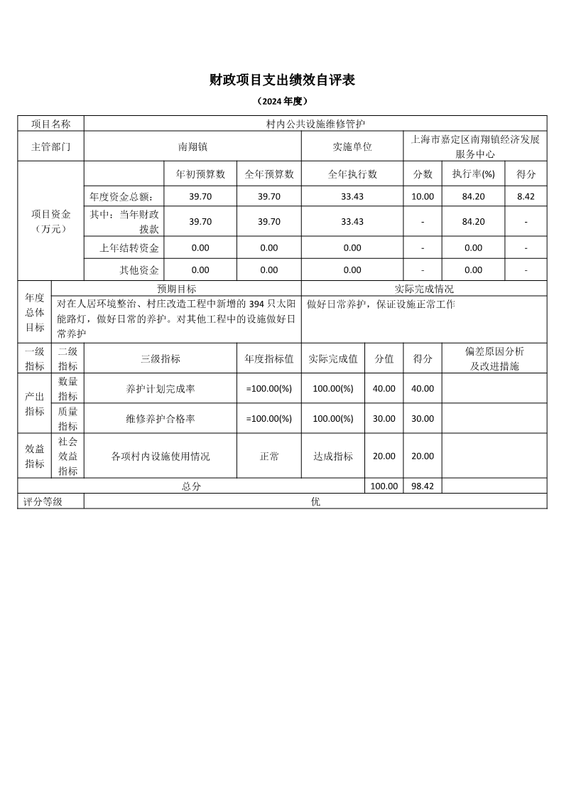 上海市嘉定区南翔镇经济发展服务中心 2024年度项目绩效自评表