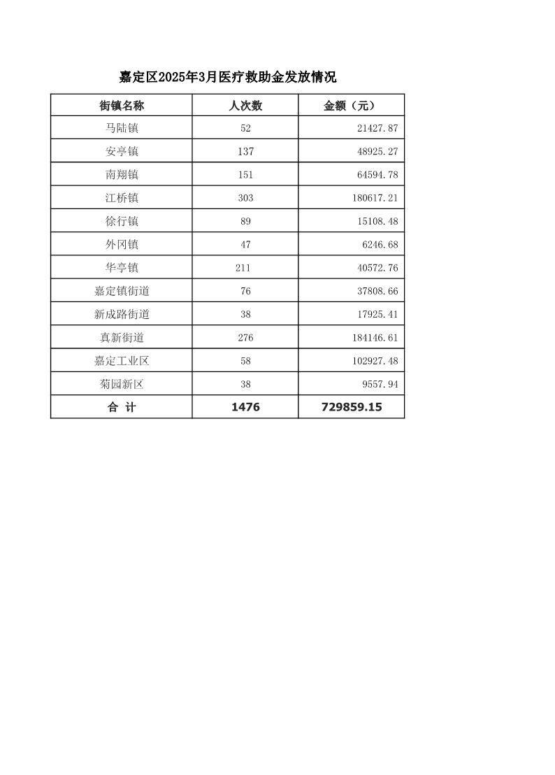嘉定区2025年3月医疗救助金发放情况