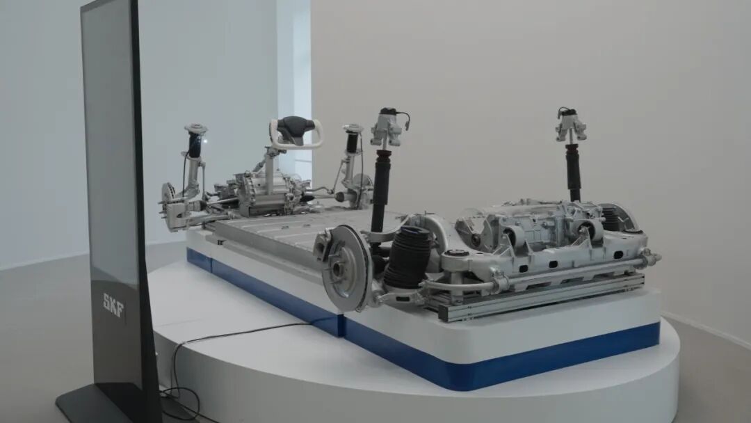 步入斯凯孚汽车亚太区总部及研发中心的大厅,荣誉墙上展示的一系列资质证书,彰显了斯凯孚集团在安亭的深耕实绩;展厅内的电驱动和智能底盘等产品,则生动体现了企业在技术创新与高端制造方面的实力。
