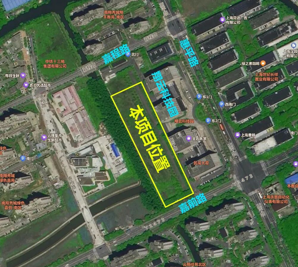 项目位于南翔镇嘉前路与惠平路交叉口附近,东至地块边界、南至嘉前路、西至杨柳泾、北至地块边界,总建筑面积约5.6万平方米,计容面积约4.6万平方米、容积率3.0。