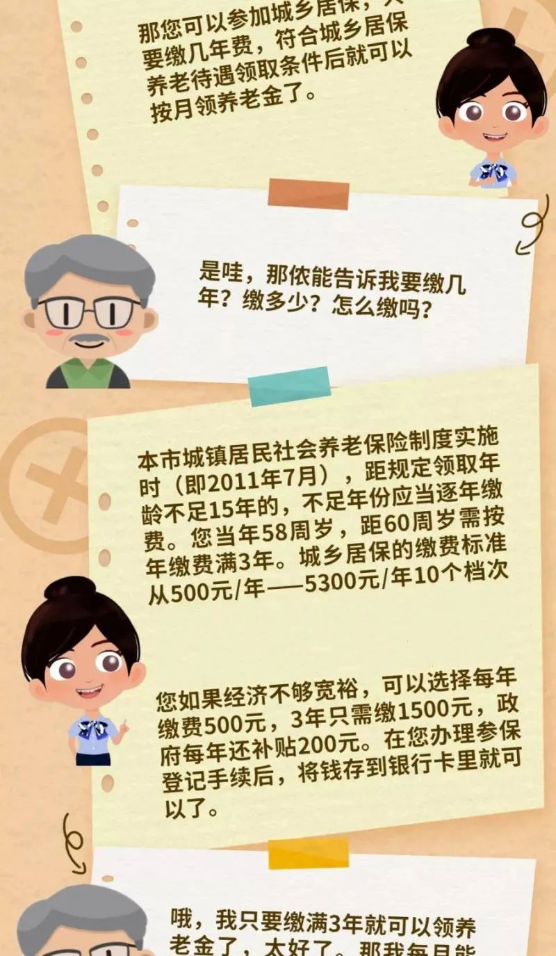 超过60岁还能参加城乡居民养老保险吗?市社会保险事业管理中心说,可以参加城乡居保,只要缴几年费,符合城乡居保条件就可以按月领养老金。缴纳方式、缴纳比例以及相关材料,详见↓