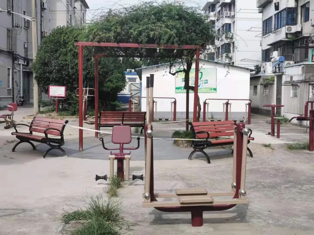 为了让“老据点”重焕光彩,居委会没有“拍板定案”,而是先听居民心里话:开座谈会、上门征求意见,把大家的需求一条条记下来,再共同商量改造方案。再走进健身苑点时,模样已大不一样:旧器材全部焕新,木香花树下建起凉亭,旁边还增设了便民晾衣架,并补种绿化。居民们还自发搬来花草装点角落,让这片空间多了几分“自家小院”的温馨。