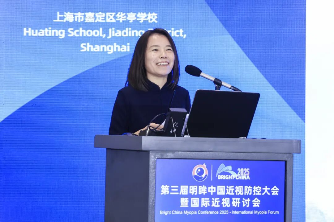 嘉定区华亭学校作为本市农村地区九年一贯制学校近视防控工作的典型代表,受大会邀请于10月26日下午在大会上分享实践经验。学校党支部书记、校长周春艳在会上作题为《从课堂到“田间”:农村九年一贯制学校近视防控的实践探索》的主题报告,全面展示了学校在推进近视综合防控方面的创新举措与显著成效。