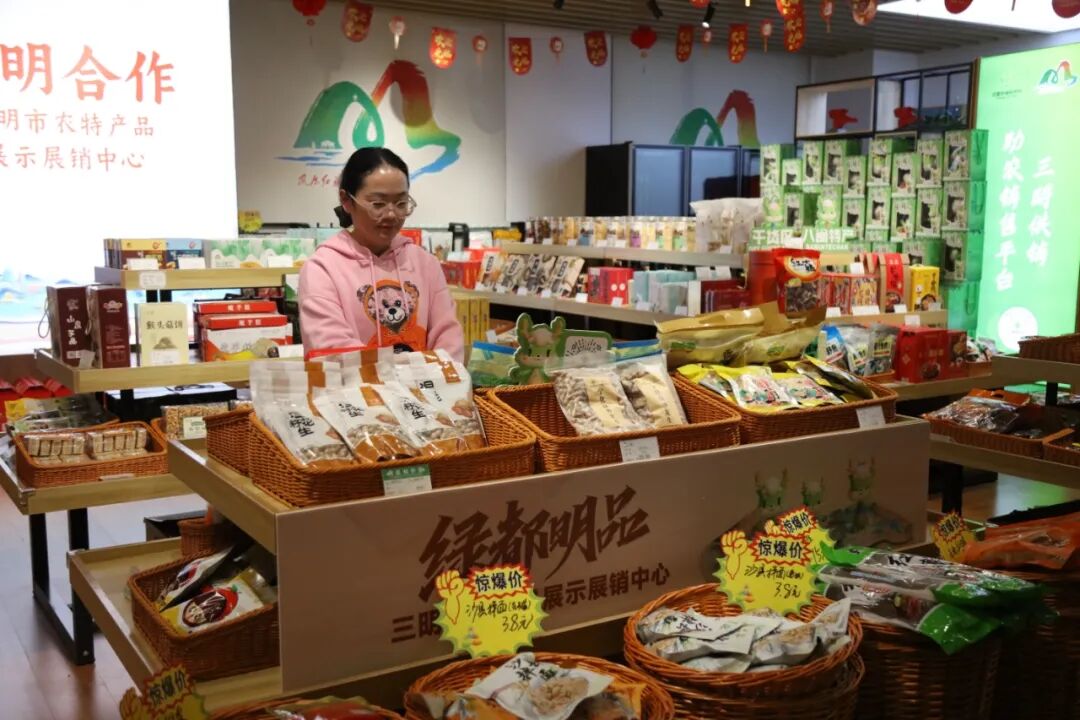 值得一提的是,位于上海三明大厦一楼的农特产品展示展销中心内,汇聚来自三明11个县(市、区)及福建泉州、莆田、龙岩、宁德等地市精选的300余款农特产品,包括三元熏鸭、沙县拌面、永安笋干、明溪肉脯干、清流豆腐皮、宁化糯薏米、建宁通心白莲、泰宁铁皮石斛、将乐红糖、尤溪尤耳、大田美人茶等产品,吸引市民驻足选购。