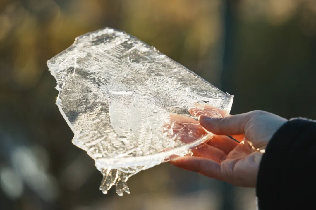 早上6点半,记者在徐行镇的上海缘菊粮食果蔬专业合作社看到,露天种植的菜叶上凝结着细密的霜花,在晨光下泛着透明光泽。田边水桶也结起薄冰,尽显冬日清冽。