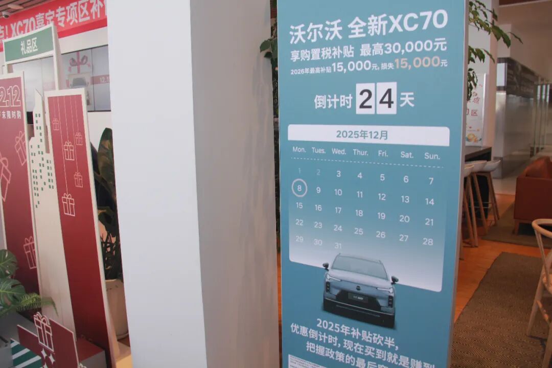 该店在12月推出了“双十二”叠加年终冲量的组合促销。上海永达嘉沃汽车销售服务有限公司销售经理陈佳宁介绍,目前沃尔沃多款车型均有活动,例如购买XC60、XC90等车型可享受3000元厂家现金补贴。更具吸引力的是针对新能源车型的“置换补贴托底”措施:对于XC70等车型,置换补贴托底额度达15000元。