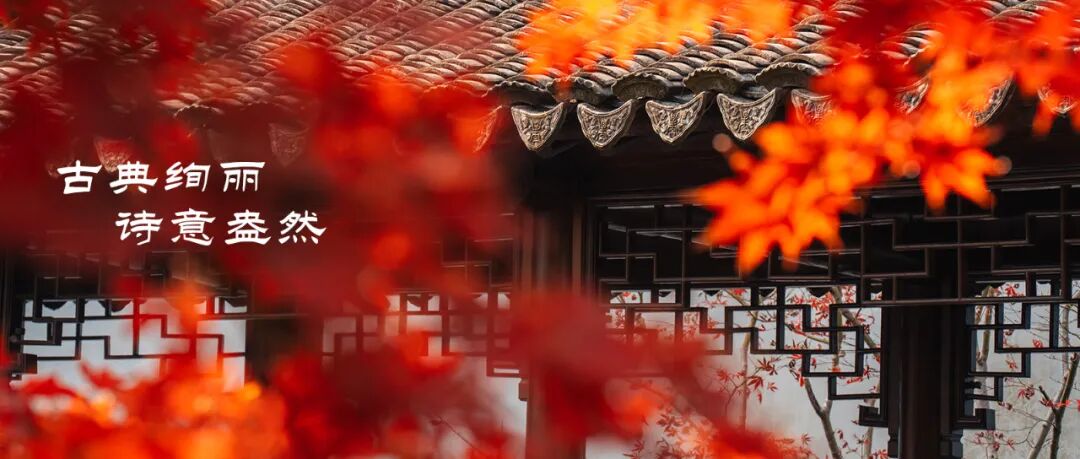 艳丽的红枫如火焰般,点燃了亭台、廊桥与白墙的静默。早安!愿这古典的绚烂,能为你的清晨添一份静美与暖意。