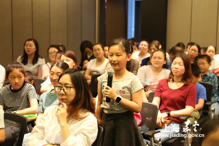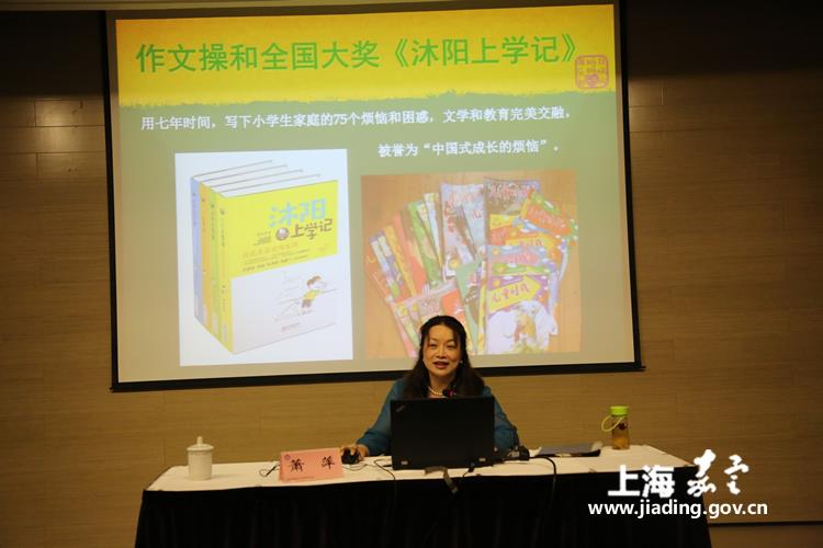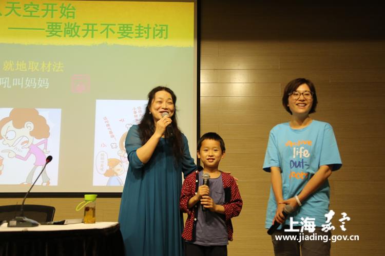 萧萍老师首先分享了她的作品《沐阳上学记》。这部作品历时7年,记录了75个小学生家庭的烦恼和困惑。萧老师告诉大家,书内所有的故事都是从小事出发,在每个家庭中都会出现,但不同的处理和思维方式会带来不同的效果。接着,萧老师带领全体读者一起做“亲子作文操”。“从身体开始——要放松不要焦虑”,不要把写作文当成一件可怕的事情,放松身体,记录生活;“从天空开始——要敞开不要封闭”,鼓励孩子多说多做,就地取材,营造更多让孩子表达想法的机会;“从万物开始——要细节不要口号”,让孩子们多描述事件的细节,给予他们更多思维整理和记录的过程;“从心灵开始——要真情不要编造”,写作文不能靠编造,更多的要从自身出发,写出自己的真情实感,或许看上去比较幼稚,但却体现出了孩子们的真实想法。萧老师现场邀请了一位家长和孩子,模拟孩子考试成绩不好后,妈妈生气的样子,告诉大家如何沟通,努力成为一名“非吼叫妈妈”。之后,萧老师深情朗诵了自己的作品《让我们去找黑的地方》。这个讲述了自己和孩子在一个神奇的下午,关闭家中的门窗,在黑暗中找东西的奇妙经历。
