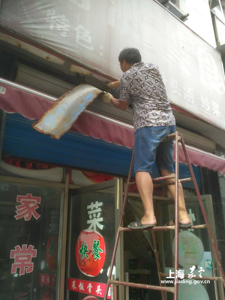 台风来临,徐行镇启动应急预案,积极应对台风“温比亚”。8月16日傍晚,徐行镇再次对沿街商铺招牌进行巡查,并拆除整修部分松动招牌。各社区挨家挨户排查高空坠物安全隐患并督促居民及时整改。