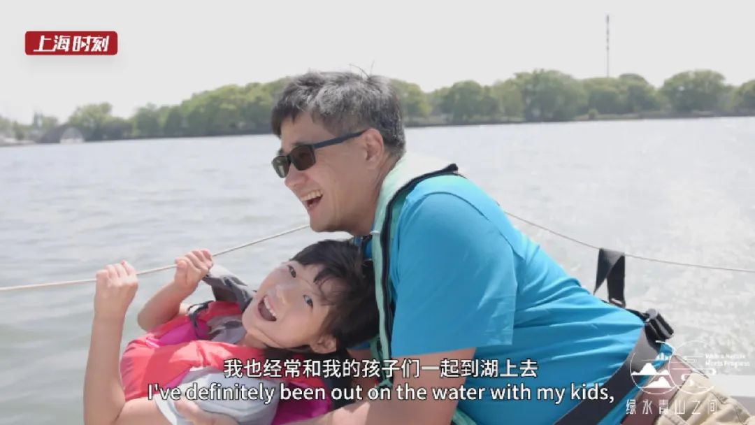 “出发咯!”在女儿雀跃的声音中,蓝白相间的帆布在风中逐渐鼓胀。船身划开湖水,向湖心驶去。对于热衷水上运动的马丁来说,在上海的家门口能拥有这样美丽的湖泊,是件幸运的事。“我看到,这里的水质每一年都在持续改善,这真是一种非常美好的体验。”