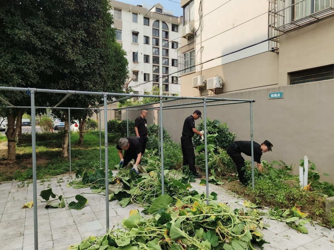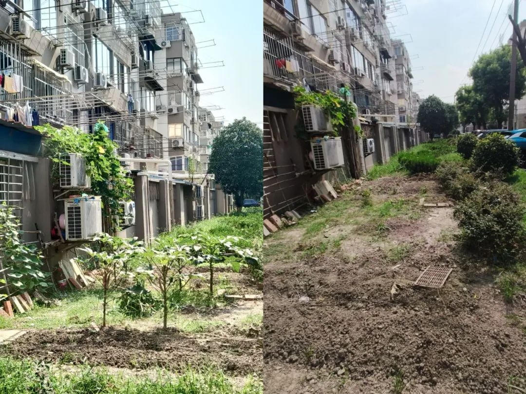 面对“潜伏菜园”露馅后的乱象,仓场社区迅速联合街道行政执法队、物业及业委会展开集中环境整治。行动当天,10余名工作人员和业委会成员组成联合劝导组,再次耐心上门,向涉事居民宣讲公共空间管理规定和乱垦乱种的负面影响。在获得居民的理解与配合后,大家共同清理了这些违规种植的农作物以及周边零散的小块菜地,小区重现整洁面貌。