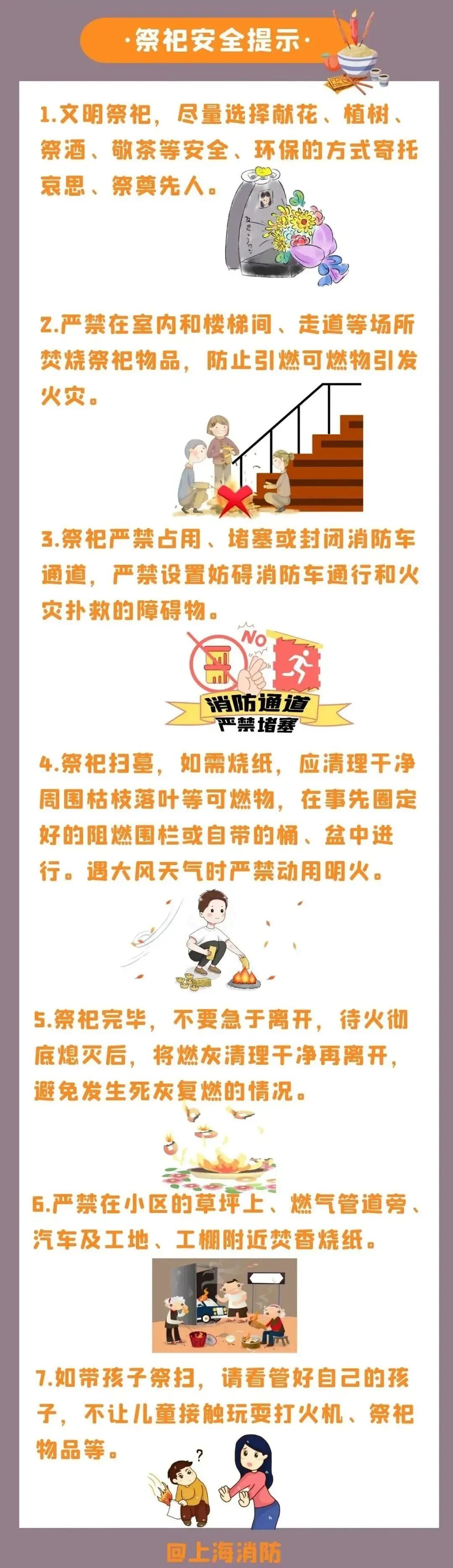 请勿在燃气管道、高压线、车辆、垃圾桶等附近,进行祭祀活动。
