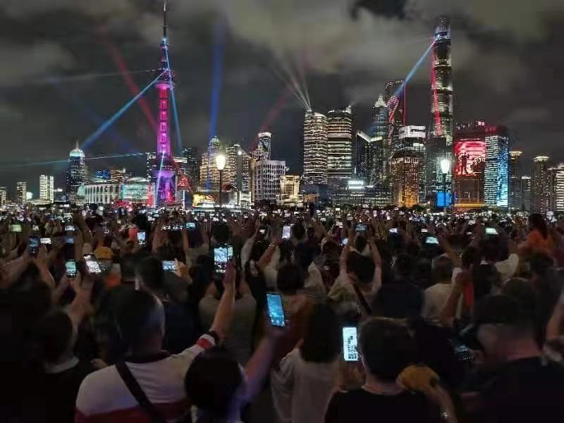 昨天22时36分,璀璨光影定格在黄浦江两岸,最后一场以“永远跟党走”为主题的庆祝中国共产党成立100周年光影秀画上圆满句号。外滩江堤上,一些市民游客仍驻足停留,抓住最后的机会,纷纷拿起手机拍下眼前这场科技感十足的盛景。