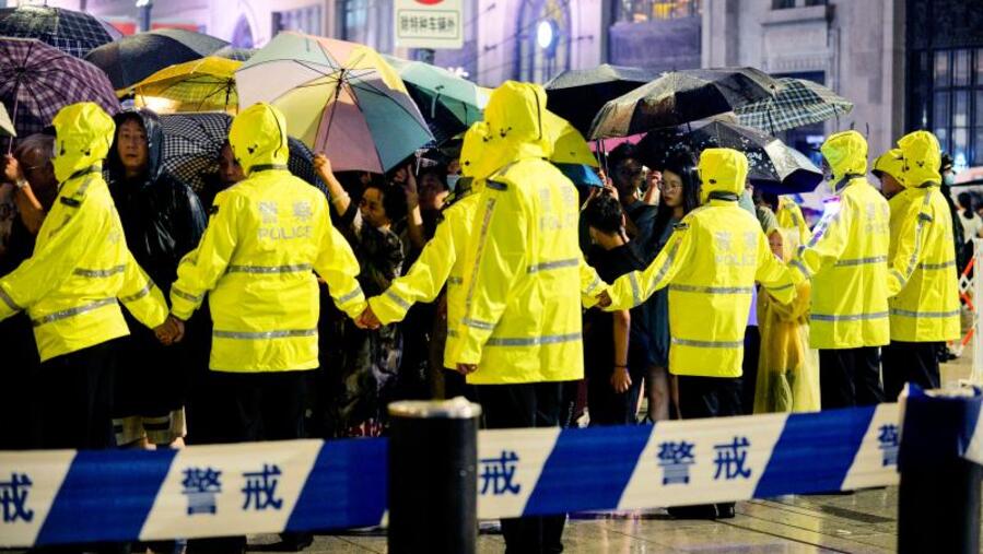为保障安全组成的“人墙”、雨中维持秩序的民警背影……这些情景,和闪耀浦江两岸的璀璨灯光一起,成为市民游客照片中的主角、直播中的镜头,展现出上海这座大都市的别样光彩。