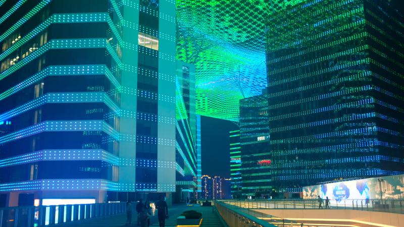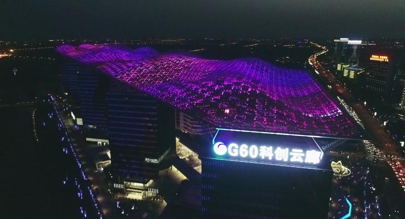 “廊”被定位为松江的发展重心后,一座总投资超百亿,多项技术指标实现全球、全国首创的G60科创云廊应运而生。13万盏LED灯,300万颗铆钉,26幢80米高的群楼,以及绵延1.5公里的建筑幅度,足以让云廊给所有来客留下一个“云中巨舰”的壮观印象。