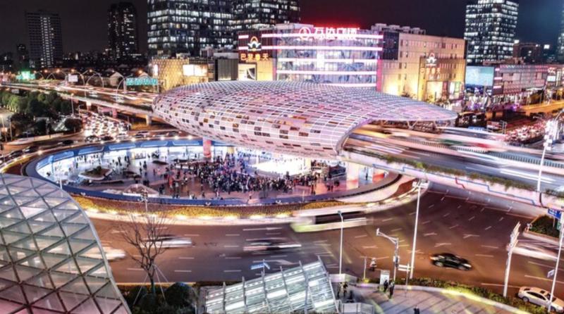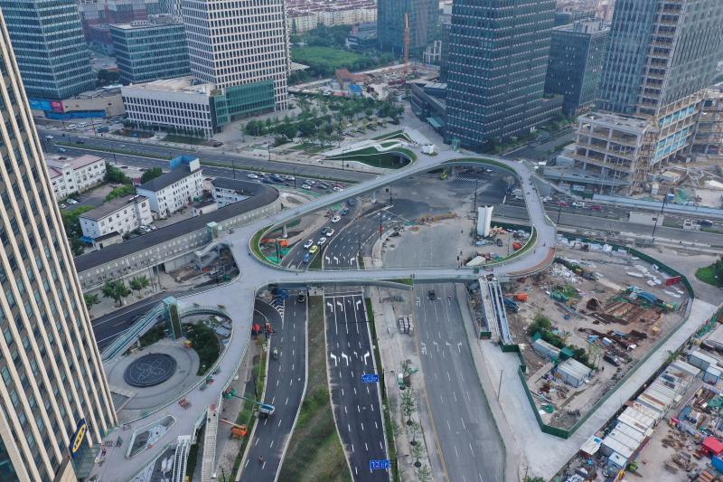 为了缓解中环真北路区域的交通拥堵,2016年6月,上海普陀真北商圈空中连廊启用。这座毗邻中环线的连廊体系横跨金沙江路和真北路,连接绿洲中环中心、118广场以及近铁城市广场南座与北座,一举实现了该地区的人车分流。