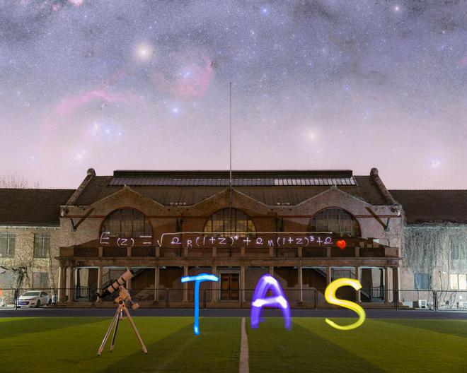 △3月7日凌晨的清华操场,他们按照真实角度合成了深度曝光的星空。王世豪摄