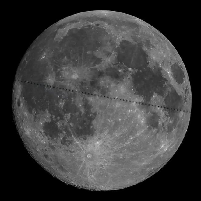 △中国空间站“穿月”的画面(画面做变慢处理)