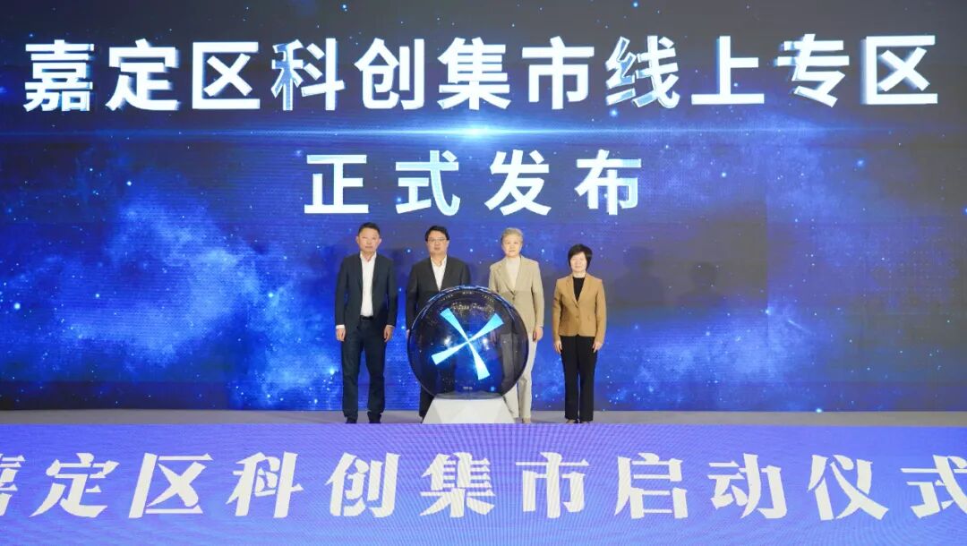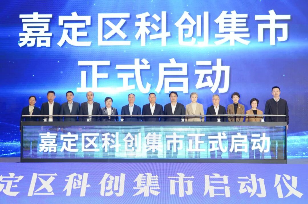 嘉定区委书记肖文高,上海银行党委副书记、行长施红敏,上海交易集团党委副书记、总裁管小军,嘉定区委副书记、区长高香,区人大常委会主任连正华,区政协主席杨莉等为科创集市启动推杆。