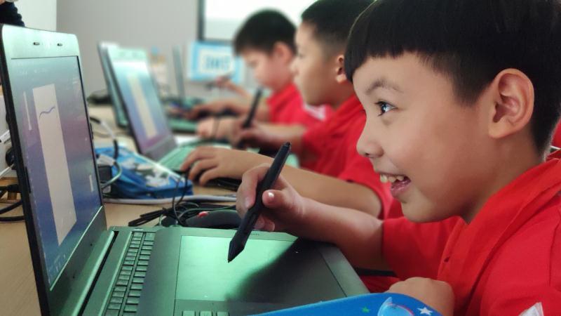 城中路小学学生朱诺在嘉定青少年科创集散地上了一天的涂鸦创意课,通过在电脑上学习绘画,制作海报,初步体验了设计的全过程。朱诺说,未来想从事设计工作,做一名珠宝设计师。